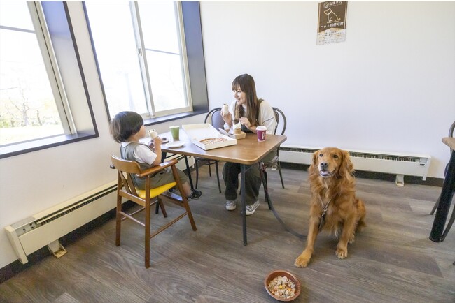 レストラン内には愛犬と一緒にお食事が出来るスペースや、フォトスポットも