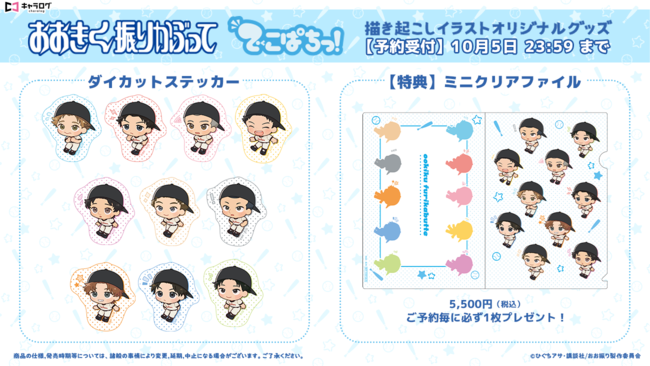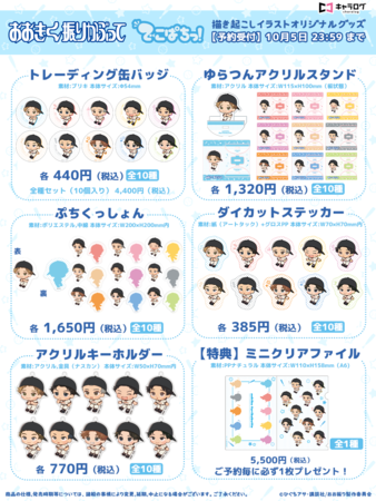オリジナルグッズは、EC通販サイト「キャラログ」にて、10/5(水)23:59まで予約販売を受付中。後日、対象店舗での二次予約受付と「キャラログ」での在庫販売も予定。情報は、後日改めて公開いたします。