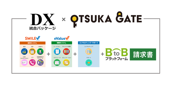 大塚商会が提供する基幹系と情報系システムを統合した「DX統合パッケージ」内の販売システム「SMILE V 2nd Edition 販売」から「BtoBプラットフォーム 請求書」に請求データを送り込み、電子請求書を発行できるようになります。これにより、請求関連業務の効率化やペーパーレス化が実現します。