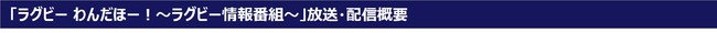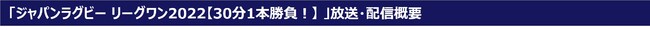 また、 ジャパンラグビー リーグワン関連番組にも注目です。「ラグビー わんだほー!~ラグビー情報番組~」は、リーグワン2年目シーズン中の間、無料で放送・配信いたします。毎週(月)午後10:00からラグビー最新情報満載でお届けします。さらには、1試合を30分で振り返る「ジャパンラグビー リーグワン2022-23【30分1本勝負!】」は、DIVISION 1の全試合を放送・配信いたします。試合が多い中で視聴時間が足りない方におすすめです。
