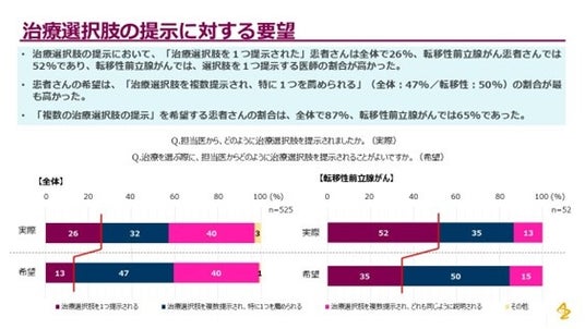 87%、mPCでは65%と、患者さんの多くは「複数提示」を希望していたが、実際に複数提示されたのはそれぞれ72%、48%にとどまった。