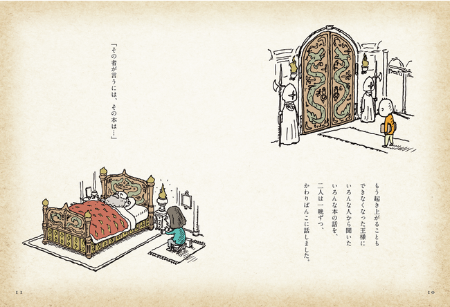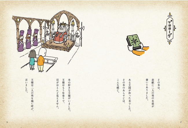 世界中のめずらしい本を探し、その本の話を聞かせるよう王様に命じられたふたりの男。ふたりは旅に出て探してきた、さまざまなめずらしい本の話を、一夜ごと王様に語り始めるー。