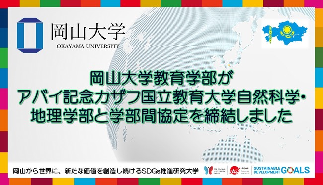 国立大学法人岡山大学(本部:岡山市北区、学長:槇野博史)の教育学部は2022年1月21日、アバイ記念カザフ国立教育大学自然科学・地理学部(Institute for Natural Sciences and Geography, Abai Kazakh National Pedagogical University)と学部間協定を締結しました。