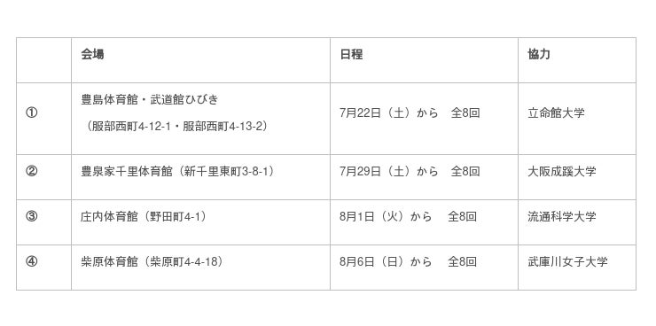 豊中市は、大学と協力してマルチスポーツ体験教室を開催します。マルチスポーツとは、1人が複数のスポーツを同時期に行うことをさします。