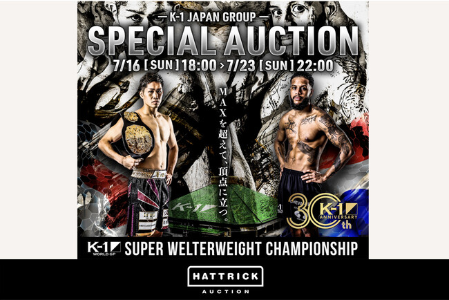 地球、そして私たちのために循環をデザインする「Circular Design for the Earth and Us」をパーパスに掲げ、大切なことにフォーカスして生きる人を増やすことを目指すバリュエンスジャパン株式会社(本社:東京都港区、代表:六車 進、以下 当社)が運営するスポーツチーム公認オークション「HATTRICK(https://auction.hattrick.world/)」にて、2023年7月16日(日)より「K-1 WORLD GP 2023 ~SUPER WELTERWEIGHT CHAMPIONSHIP~スペシャルオークション」を開催しています。