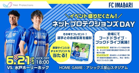 株式会社ネットプロテクションズ(所在地:東京都千代田区、代表取締役社長:柴田 紳、以下当社)は、2025年6月21日(土)のFC今治のホームゲーム水戸ホーリーホック戦において冠スポンサーとして「ネットプロテクションズ DAY」を開催いたします。