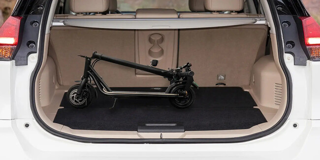 ちょっとした買い物、通勤や通学といった日常使いにぴったり。約5.5時間充電で約30kmまで走行可能です。8.5インチのノーパンクタイヤを採用しているので、スムーズで安定感ある走行感を実現。IP54の防水・防塵機能を備えているので、雨や砂埃に強く耐久性が高いモデルです。盗難防止用ワイヤーロックが付いているので、駐輪の際も安心。前輪にはディスクブレーキ、後輪にドラムブレーキを採用し、安定した制動力を確保。後方や後方サイドの確認がしやすい、大型のバックミラーを左右に搭載し視認性アップ!