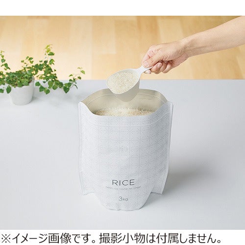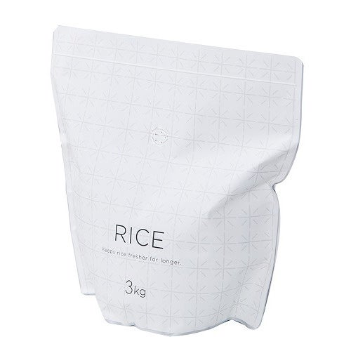 光、空気、臭いを通さず密閉し、お米の鮮度保持を極めたおいしく保存できる袋です。お米の量に合わせて省スペースに収納できます。マチ付きのため袋だけで自立します。