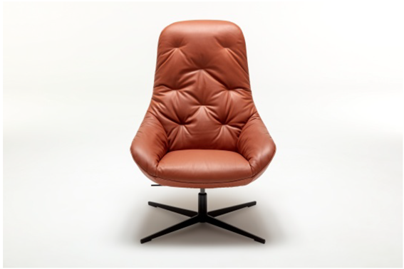 座面に丁寧に施されたキルティングは、ヴィヴィットな印象と、ソフトな座り心地を提供します。「MEG」と同様、人間工学に基づいた独自のロッキング機能と、高さ調節で実現した快適な座り心地が魅力の高級感溢れる、回転式ラウンジチェアです。