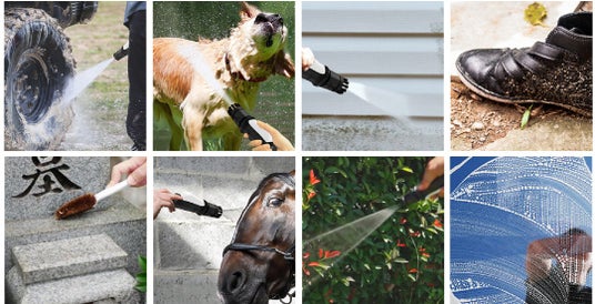 シャワーノズルに取付してどこでも洗車いただけます。スポンジブラシや洗剤用スプレーガンなど水道の無い場所でも洗車可能!