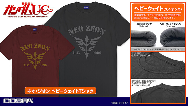 公式キャラクターコスチュームやアパレル、グッズの企画、開発、製造を行う株式会社コスパは『ガンダム』シリーズよりヘビーウエイトTシャツ・フリースジャケットがラインナップ。〈ワンダーフェスティバル 2023[夏]〉コスパブースにも登場。