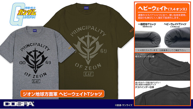 『ガンダム』シリーズより、ハードでタフな生地を採用しているヘビーウエイトTシャツ4型が登場。