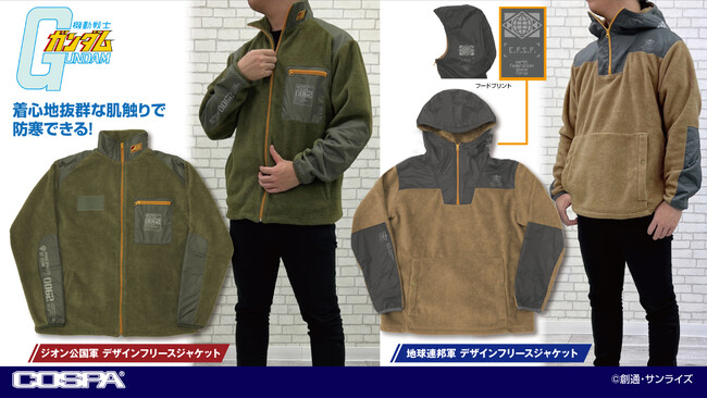 そして、昨年に続き2023年もフリースジャケットがラインアップ。ジオン公国軍、地球連邦軍をモチーフに、オリジナルで仕上げた型は劇中の雰囲気を感じられるデザイン。さらに、肌触りの良い生地を採用することでタウンユースでも活躍できる。涼しくなる秋に向けてはもちろん、冷房が効きすぎた屋内用に置いておくと活躍しそうなアイテムだ。
