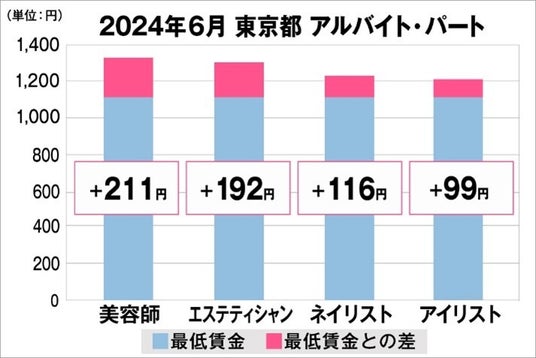 東京都の美容業界における採用時給料に関する調査結果 (アルバイト・パート)2024年6月美プロ調べ
