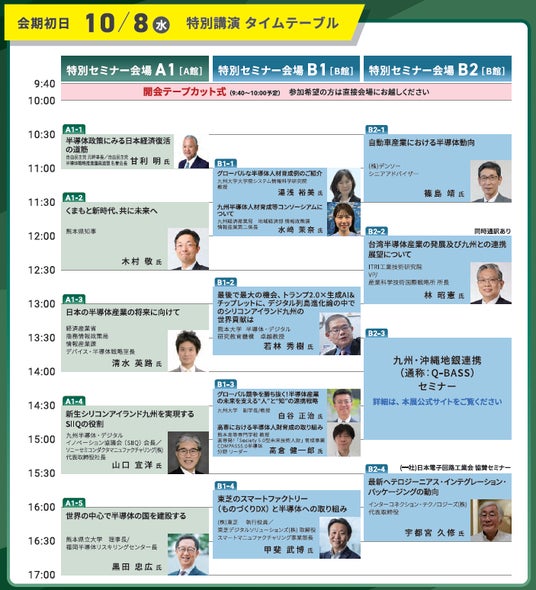 ■講演プログラムの最新スケジュールが決定! 甘利半導体議連名誉会長、経済産業省をはじめとした講師陣による、九州の半導体産業の「今」と「未来」がわかる充実のセミナー