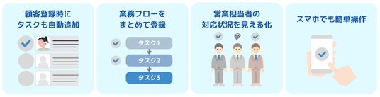 ・タスクが共有されることで、管理者は営業担当者の対応状況を可視化、適切な指示出しが可能。