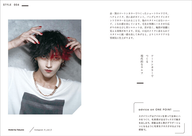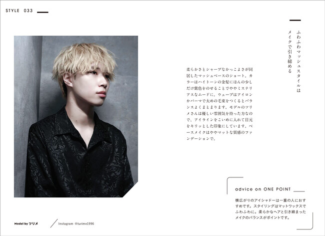 [CASE 001]では、本人はもちろん、人気YouTuberグループ「アバンティーズ」のツリメ(16.1万人)をはじめ、Takuma(77.6万人)、Ray(33.6万人)など、それぞれが多くのフォロワーを持つインフルエンサーがモデルとして多数出演。ヘアスタイルやメイクについて解説。写真とワンポイントアドバイスを見るだけで、すぐに真似できる再現性の高いスタイルが目白押しです。