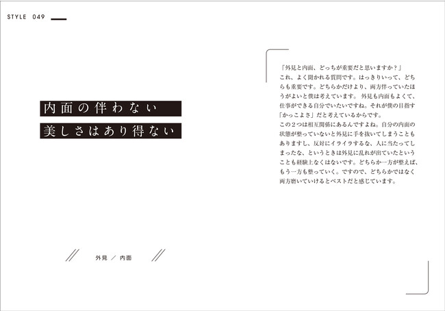 S T Y L E 049 内面の伴わない美しさはあり得ない S T Y L E 050 自信をつけるために結果を出す
