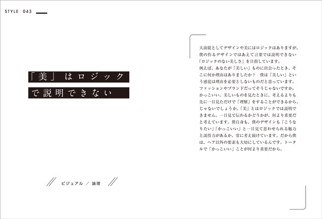 S T Y L E 043 「美」はロジックで説明できない S T Y L E 044 常に、オープンでいる