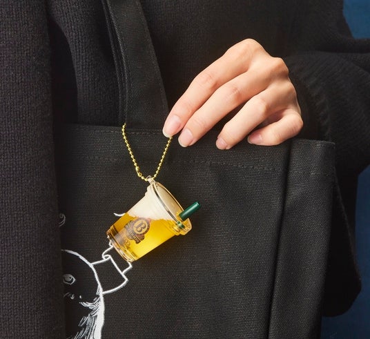 バタービールがそのまま小さくなったようなビジュアルのキーホルダー。コラボレーション限定のデザインカップに、シュワシュワとした液体と白い泡を再現しています。カバンやポーチに付けてお楽しみください。