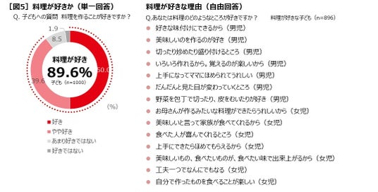 料理経験のある子どもの89.6%が料理好き。「楽しいから」「美味しいと言ってもらえてうれしいから」