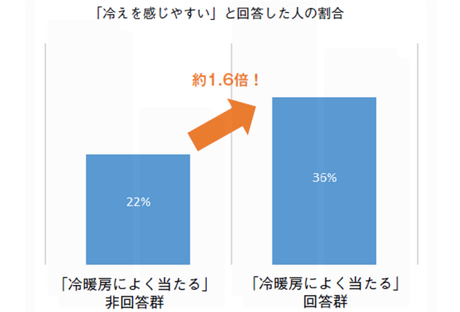 【参考】:「冷暖房によく当たる人」と「冷えを感じやすい人」の関係