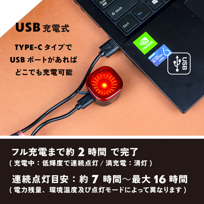 TYPE-C充電式でUSBポートがあればどこでも充電可能です。