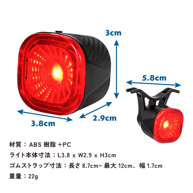 ブレーキや振動を感じたら高輝度で後方にお知らせするリアライトです。また、自動点灯&消灯機能もあり自動で点灯消灯します。