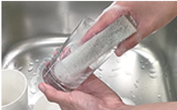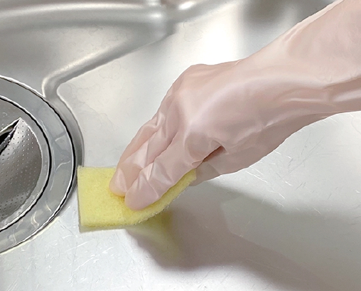 クエン酸付きの不織布パッドです。シンク、蛇口、水切りかごの水アカ落としにぴったり。
