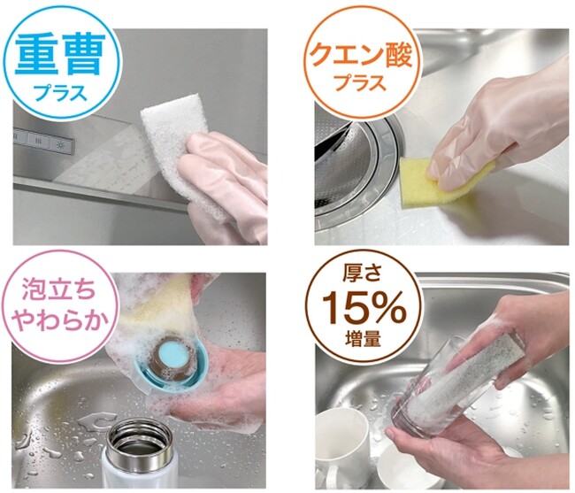 重曹入り・クエン酸入り・泡立ちやすい・厚手の4タイプが登場!使用シーンに合わせて選べます