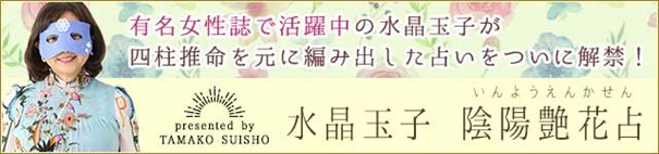 『水晶玉子 陰陽艶花占』は女性誌オファー独占!の人気的中占い師、水晶玉子による月額公式サイトです。「陰陽艶花占」は、古代中国で生まれた「四柱推命」をベースに、水晶玉子独自の視点で編み出されたオリジナル占いです。