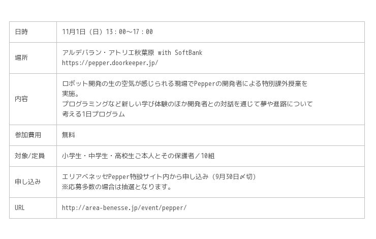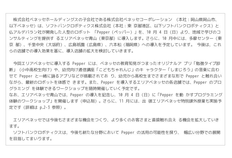 <エリアベネッセ Pepper 導入概要>