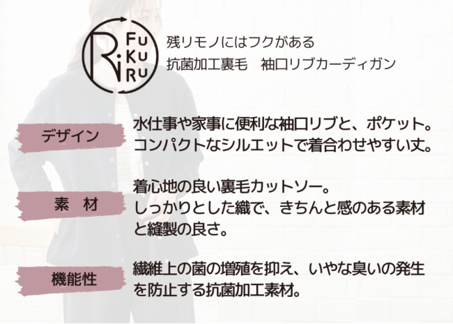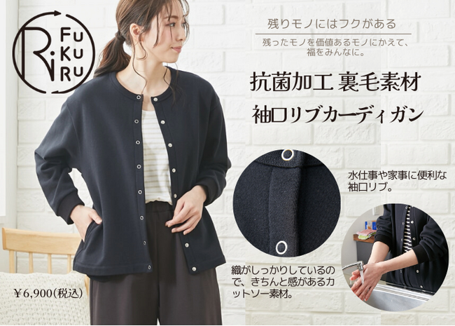 商品名:残リモノにはフクがある 日本製 抗菌加工 裏毛袖口リブカーディガン RiFUKURU