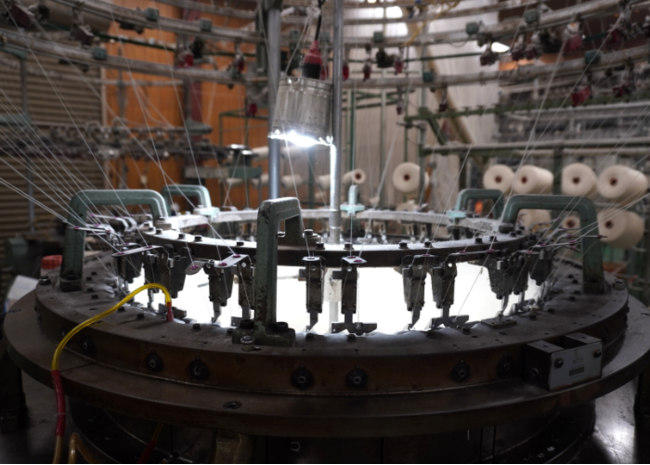 「株式会社オカザキニット」は、1950年「岡崎莫大小工場」として創業。メリヤス肌着用の生地編立からポロシャツやTシャツ、スウェットに代表される丸編みカットソーの編立製造へと発展してきました。