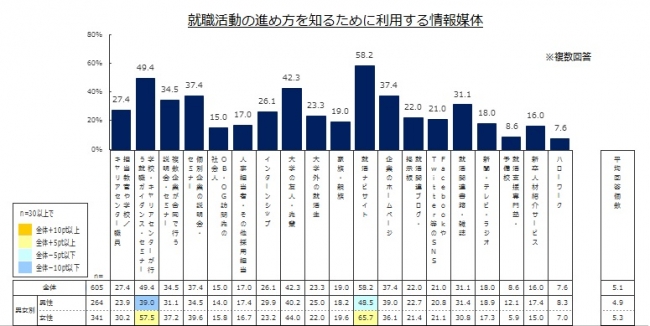 「就活ナビサイト」58.2% 「学校/キャリアセンターが行う就職ガイダンス・セミナー」49.4%