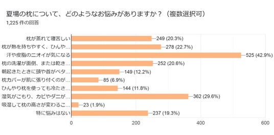 「夏場の枕について、どのようなお悩みがありますか?」(複数選択可)