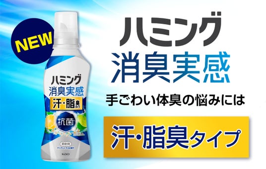 手ごわい体臭の悩みに特化した柔軟剤。汗臭はもちろん、皮脂臭・加齢臭もブロックするトリプル消臭仕様。部屋干し臭にも強く、これからの季節に大活躍の柔軟剤です。