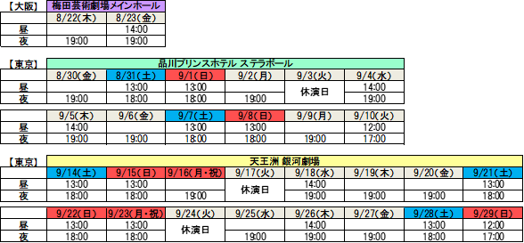 東京 品川プリンスホテル ステラボール 8/30(金)~9/10(火)/天王洲 銀河劇場 9/14(土)~9/29(日)