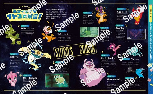 スティッチを語る上では欠かせない、声優・山寺宏一さんのスティッチ愛が伝わるメッセージを掲載。ほかにも、スティッチ・クロニクル、スティッチの627体のイトコ一覧、エンジェル&リロイの紹介など、豊富なイラストと映画・アニメシーン画像を織り交ぜた特集を収録しています。
