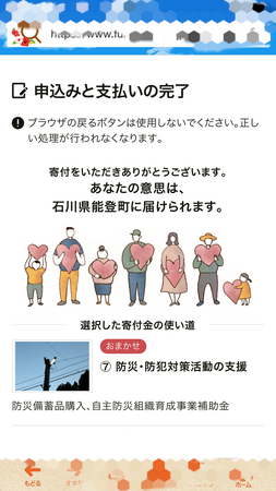 ・寄付先; 石川県能登町のふるさと納税(https://www.furusato-tax.jp/city/product/17463)返礼品なし・防災使途指定