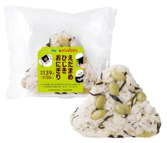 「パンどろぼう おにぎりぼうやのたびだち」に出てくる「えだまめひじきおにぎり」をイメージしました。枝豆をたっぷり使用し、ひじきと合わせました。