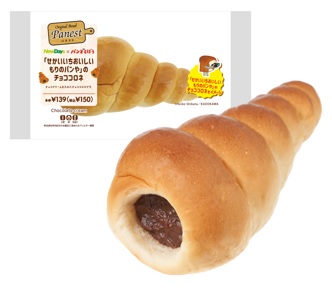 「せかいいちおいしい もりのパンや」のチョココロネをイメージしました。