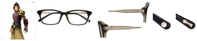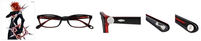 ロクサス、アクセルと仲の良いシオンをイメージ。漆黒をベースにしたカラーリングでXIII機関を表現しています。テンプル(つる)に彼女のアイコンと、狭間の者の衣からデザインしたパーツを、テンプル先には、レプリカキングダムチェーンのメタルパーツを飾りました。