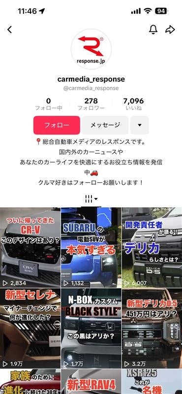 レスポンスは、これまでWebメディアを通じて自動車・モビリティ業界のニュースや技術動向をお届けしてまいりましたが、近年は「動画で手軽に情報を知りたい」というニーズが高まっています。そこで今回、より気軽にレスポンスの情報に触れていただける場として、TikTokでの発信をスタートしました。
