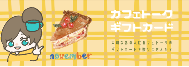 世界中の講師と生徒をつなぐオンライン習い事サイト「カフェトーク(http://cafetalk.com/)」を運営する株式会社スモールブリッジ(本社:東京都渋谷区、代表取締役:橋爪小太郎)は、2022年11月2日、同サービスでレッスン予約に利用できるポイントをプレゼントできるカフェトークギフトカードの11月限定デザインを販売開始致しました。