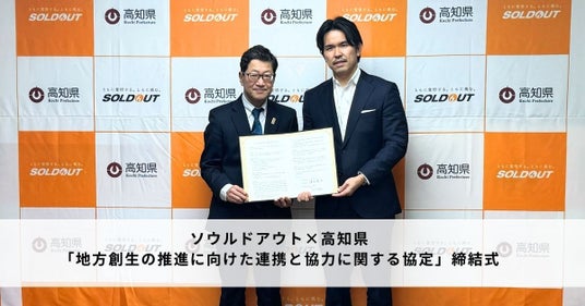 地方を含む全国の志ある中堅・中小企業の成長支援をデジタルマーケティング領域で展開するソウルドアウト株式会社(本社:東京都文京区 代表取締役社長CEO兼CCO:北川 共史、以下「ソウルドアウト」)は、高知県(知事:濱田 省司)と「高知県の地方創生の推進に向けた連携と協力に関する協定書」を締結し、4月8日に高知県庁にて締結式を執り行いました。