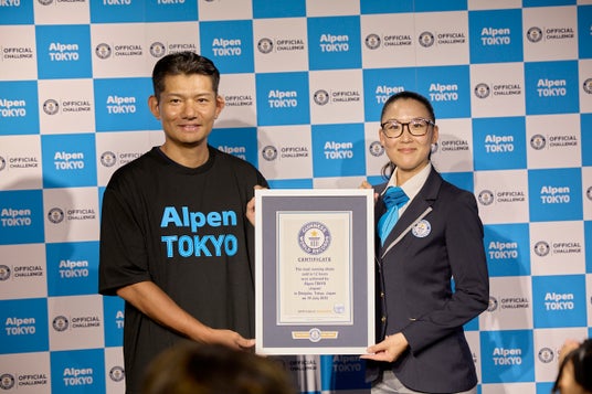 スポーツ用品販売の株式会社アルペン(本社:愛知県名古屋市、代表取締役社長:水野 敦之)は、2025年7月19日(土)に旗艦店舗であるAlpen TOKYOにて「12時間で売れたランニングシューズの最多個数」に挑戦し「1,254足」で世界NO.1としてギネス世界記録(TM)に認定されました。
