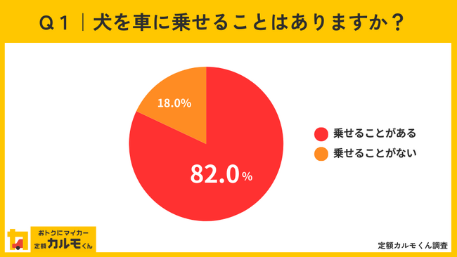 自家用車を所有し犬を飼っている人に、犬を車に乗せることがあるかどうか聞いたところ、「乗せることがある」が82.0%、「乗せることがない」が18.0%という結果となりました。車を持つ愛犬家の8割以上が、犬と一緒に車に乗っていることがわかりました。