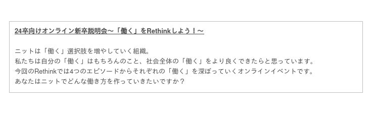 新卒説明会開催概要
