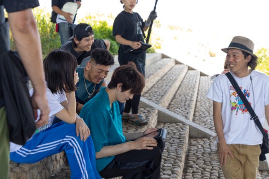 またこの度、本作撮影現場での岡田将生さんや上田慎一郎監督などの貴重な姿を収めたオフショット写真も公開いたします。真剣な表情で演技確認をしつつも、休憩中には楽しそうに談笑する姿も!作中の氷室たちに負けないチームワークで監督、キャスト、スタッフ一同が撮影に臨んだ本作品を、ぜひお楽しみください。